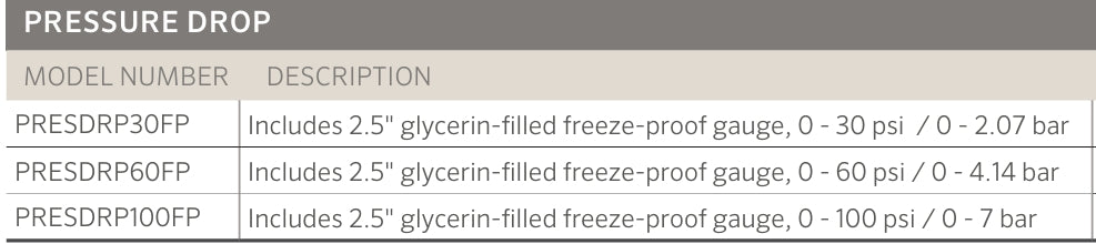 Includes either a 0-30 psi or 0-60 psi glycerin-filled 2.5" diameter gauge