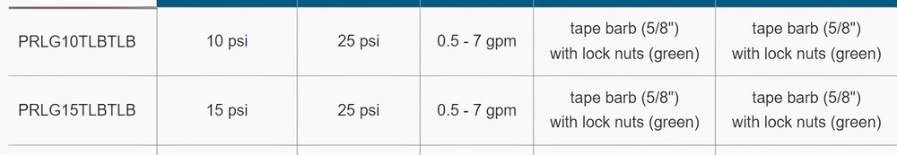 • PRLG15TLBTLB - 15 psi